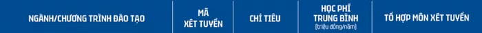 | Chuyên ngành | Học phí năm học 2024-2025 |