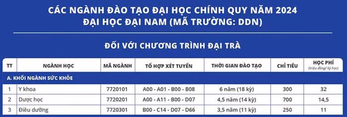 Trường Đại học Đại Nam thông báo học phí năm 2024 giữ nguyên trong toàn khóa học và được thu theo từng học kỳ (mỗi năm học có 3 học kỳ).