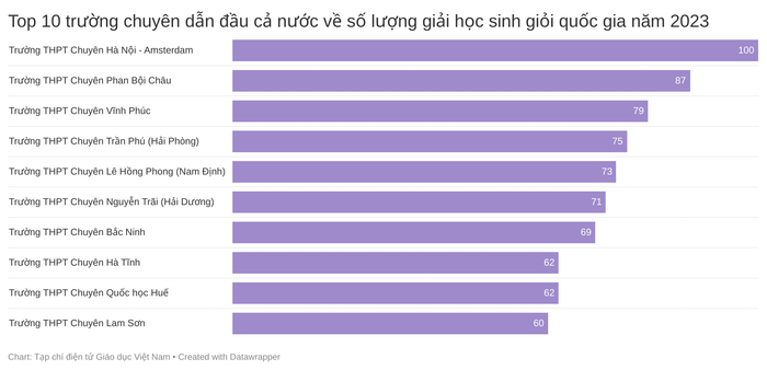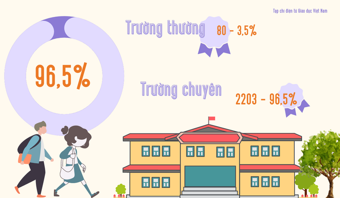Kết quả thi chọn học sinh giỏi quốc gia cấp trung học phổ thông năm 2022-2023 có 2.283 giải thưởng. Trong đó, khoảng 96,5% (2.203/2.283) giải thưởng học sinh giỏi quốc gia thuộc về học sinh các trường trung học phổ thông chuyên còn các trường trung học phổ thông không chuyên chỉ chiếm 3,5% tổng số giải năm nay, cụ thể là 80/2.283 giải.