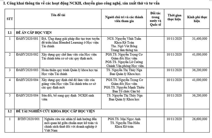 Theo báo cáo 3 công khai của Học viện Tài chính, nội dung về giáo trình, tài liệu tham khảo do cơ sở giáo dục tổ chức biên soạn, được công khai đầy đủ tên giáo trình, tài liệu tham khảo (kể cả giáo trình điện tử), năm xuất bản, kế hoạch soạn thảo giáo trình, tài liệu học tập.