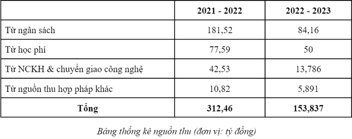Thầy Toại thông tin, nếu tính tổng toàn trường, con số này là 278,55 tỷ đồng. Còn về nguyên nhân nguồn thu giảm so với năm 2021 là do năm 2022 không phát sinh nguồn ngân sách nhà nước xây dựng cơ bản (năm 2021, ngân sách nhà nước xây dựng cơ bản là 58,62 tỷ đồng).