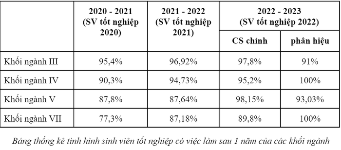 Ngoài ra, báo cáo 3 công khai còn công bố tỉ lệ sinh viên tốt nghiệp có việc làm sau 1 năm ra trường đối với sinh viên tốt nghiệp hệ chính quy năm học 2021.