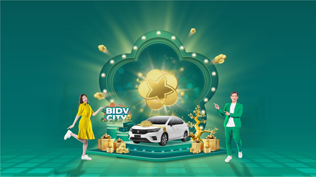Cơ hội trúng ô tô Honda City và 2022 giải thưởng may mắn khác từ chương trình “Đón Mai vàng – Rước xế sang” khi người chơi game thực hiện một trong các giao dịch như: Đăng ký mới BIDV SmartBanking; Mở tài khoản Như ý/tài khoản Chọn tên Như ý có phát sinh phí, gửi tiết kiệm online, chuyển tiền quốc tế, mở thẻ quốc tế BIDV…