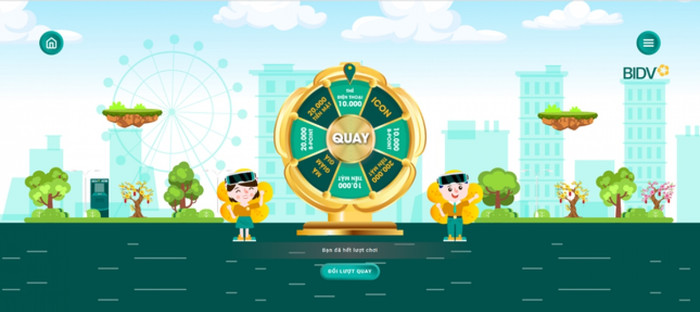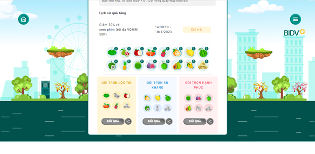 Sau khi sưu tập được icon trên hành trình vượt chướng ngại vật, người chơi có thể dùng số icon tích lũy được để đổi lượt quay vòng quay may mắn trúng các giải thưởng: Tiền mặt đến 200.000 đồng, thẻ BIDV Prepaid 1 triệu đồng, thẻ nạp điện thoại, điểm B-Point dùng để đổi quà trên BIDV SmartBanking, mã giảm giá thanh toán trên ứng dụng BIDV SmartBanking.