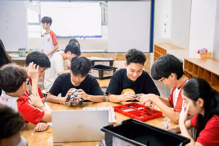 Tại phòng học Makerspace chuyên dụng của Hanoi Academy, các em được tiếp xúc và thực hành với nhiều chất liệu đa dạng và phong phú, từ những vật liệu gần gũi trong đời sống thường ngày như bút chì, keo dán, giấy cuộn, lego,… cho đến những thiết bị hiện đại như máy in công nghệ cao, chip robotics, bộ kĩ thuật điện,…