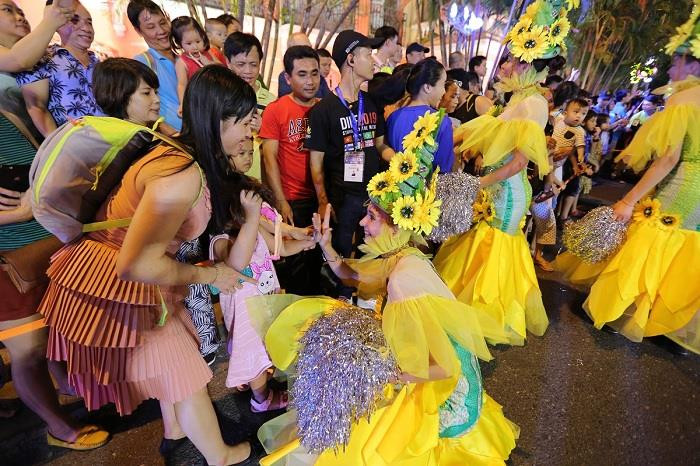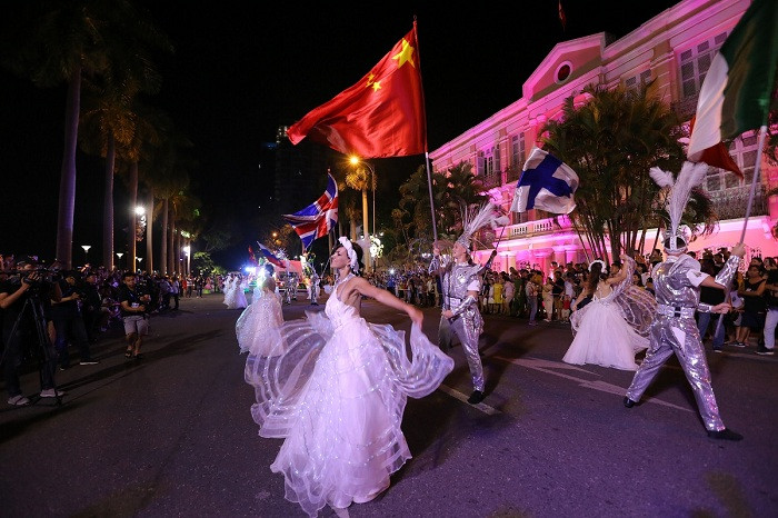 Hơn 80 vũ công chuyên nghiệp đến từ nhiều quốc gia châu Âu và châu Mỹ, 4 xe hoa được trang trí cầu kỳ loài mang hình ảnh những hoa đặc trưng của 8 quốc gia Nga, Brazil, Bỉ, Phần Lan, Ý, Anh, Trung Quốc và Việt Nam tham dự Lễ hội pháo hoa quốc tế đã biến đường phố Đà Nẵng trở thành “đại tiệc hội hè” đầy phấn khích.