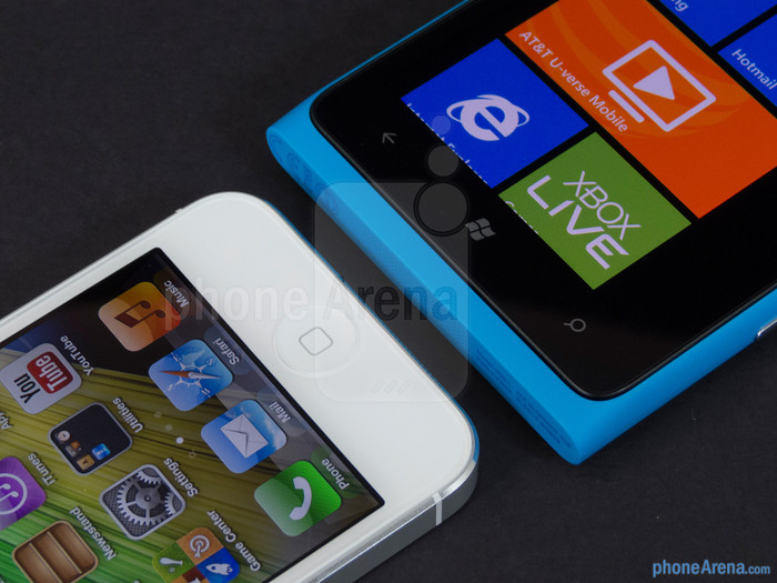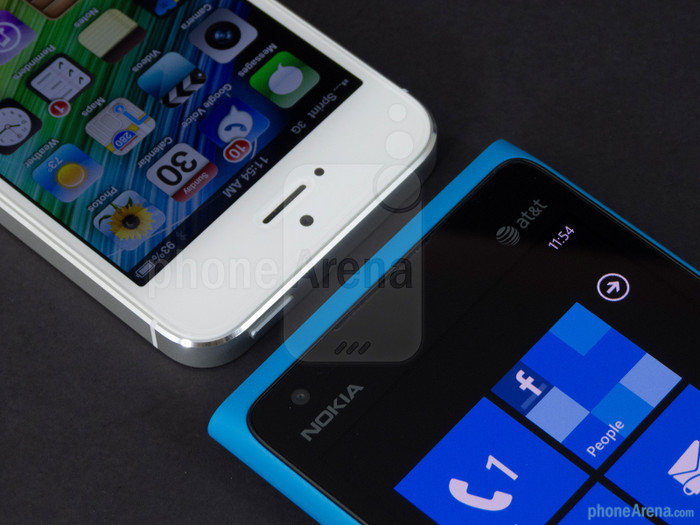 | iPhone 5 (bên trái) và Lumia Nokia 900 (bên phải) |