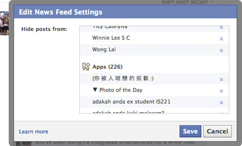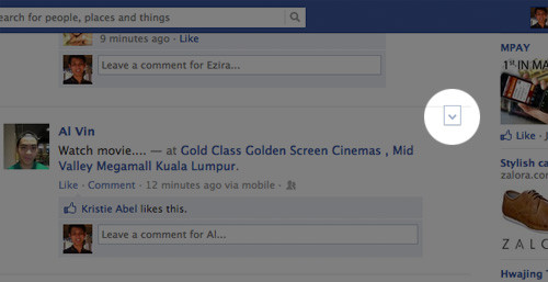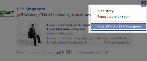 Bấm vào biểu tượng mũi tên chỉ xuống tại mỗi tin tức, chọn "Hide Story" để làm ẩn một cập nhật cụ thể hoặc chọn "Hide all from…" để làm ẩn toàn bộ tin tức liên quan.
