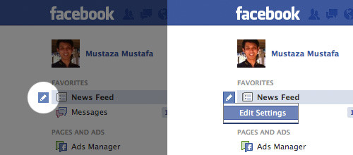 Trong trường hợp bạn muốn theo dõi lại đối phương, hãy bấm vào biểu tượng cây bút chì thuộc dòng News Feed phía bên trái của Facebook, chọn Edit Settings.