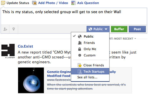 Hãy lựa chọn chế độ Public (công khai), Friends (với bạn bè) hoặc một danh sách thật linh hoạt qua phần Custom.