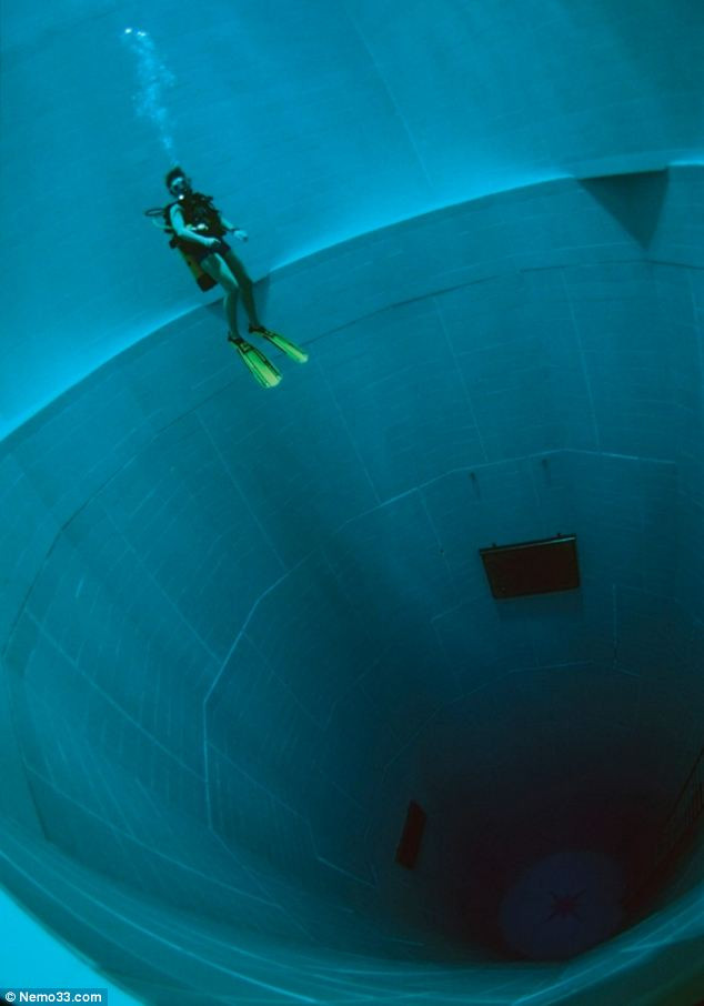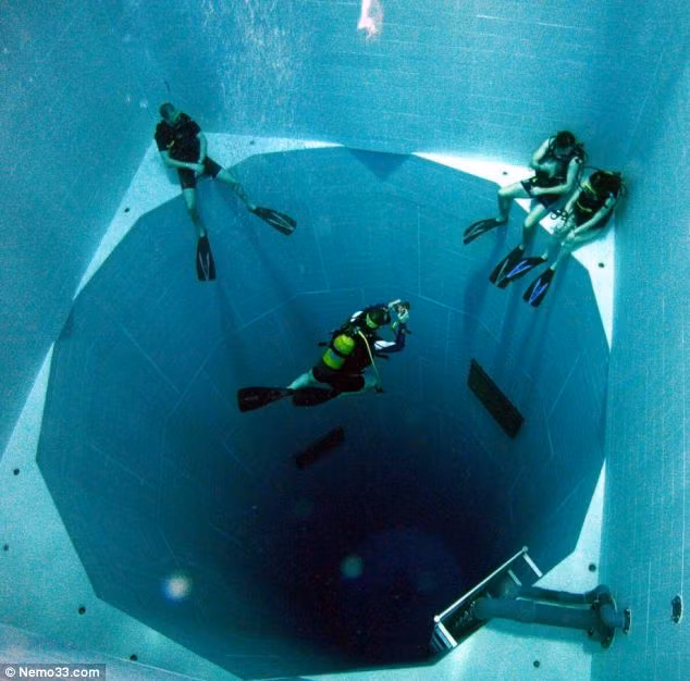 | Bể bơi Nemo 33 sâu 113 feet (tương đương 34,5 mét) |