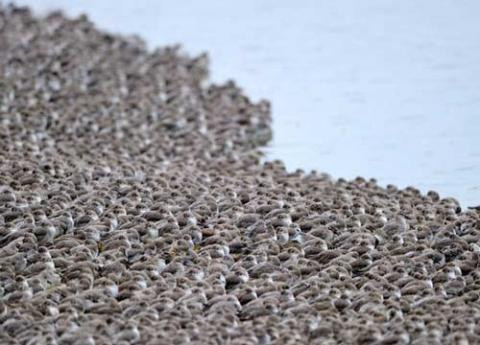 | Một đàn chim thiên di về bờ biển Wash, Norfolk (Mỹ) |