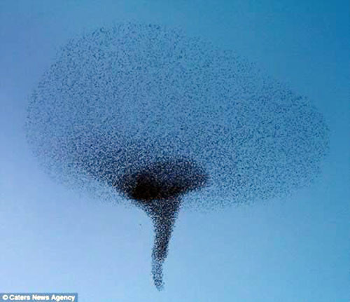| Đàn chim sáo khổng lồ nhuộm đen bầu trời Scotland khi di tản. |