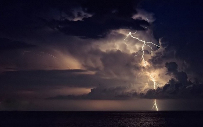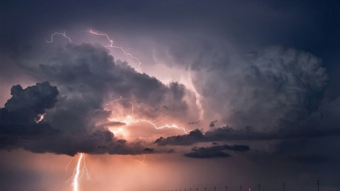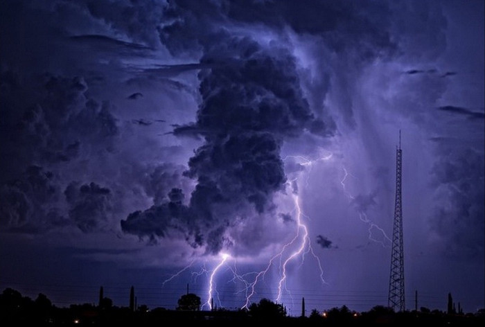 | Những tia sét trong những đám mây cuồn cuộn. |