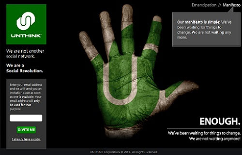 Ra đời hồi tháng 10/2011, Unthink ủng hộ lập trường bảo vệ quyền riêng tư, chống việc lấy mạng xã hội làm công cụ kinh doanh. Unthink cam kết người dùng sẽ được làm chủ dữ liệu cá nhân của mình. Công ty này thẳng thừng tuyên bố “chống Facebook”, thậm chí còn có cả một video quảng cáo chế giễu CEO của Facebook Mark Zuckerberg.