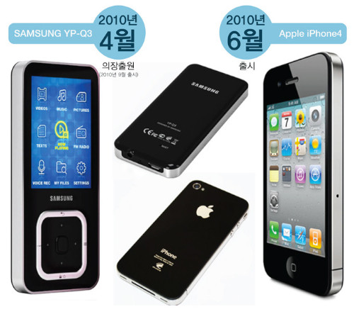 Sau đó, Samsung tiếp tục bảo vệ bác bỏ cáo buộc ăn cắp thiết kế sản phẩm iPhone 4 của Apple bằng mẫu YP-Q3. Với thiết bị này, hãng điện tử Hàn Quốc khẳng định họ đã nghĩ đến thiết kế góc bo tròn với viền kim loại trước cả Apple.