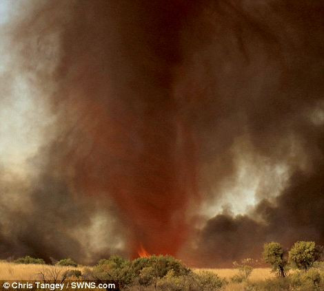 “Cột lửa xoáy cao khoảng 300m và trời không có gió nhưng cơn lốc xoáy mạnh trông giống như máy bay chiến đâu”.