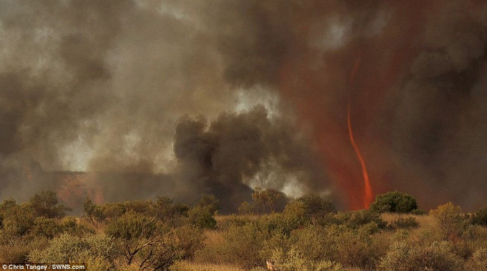 Các vòng xoáy lửa kéo dài khoảng 2 phút. Đây là một hiện tượng rất hiếm khi xảy ra.