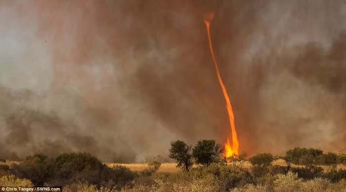 Cột lửa xoáy được ví như “con quỷ lửa” bị gây ra khi một cột không khí ấm tăng cao hoặc do đám cháy trên mặt đất.