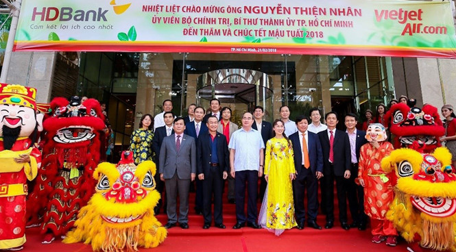 Khai xuân mùng 6 tháng giêng Tết Mậu Tuất, Ủy viên Bộ Chính trị, Bí thư Thành ủy Thành phố Hồ Chí Minh Nguyễn Thiện Nhân đã cùng lãnh đạo Sở, ban, ngành Thành ủy TP.HCM đến thăm và chúc tết cán bộ nhân viên HDBank, Vietjet.