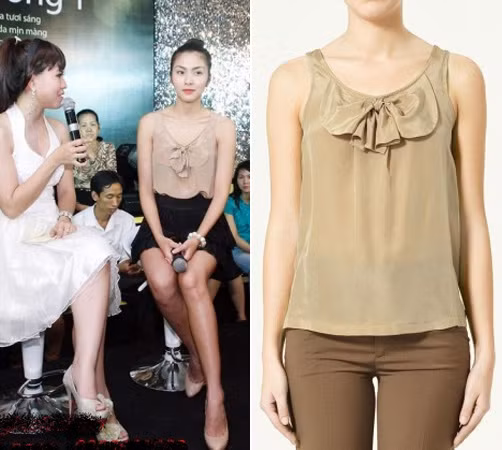 | Mẫu áo đơn giản này bỗng dưng được nhiều cô gái quan tâm khi Tăng Thanh Hà chọn mặc. |