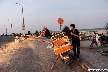 Đàn ông Việt Nam rất thích bia hơi và thịt nướng và họ cũng rất yêu âm nhạc. Hiếm có quán bia nào không có chút nhạc xập xình. Người bán hàng rong ở Đồng Hới này có một chiêu thức vô cùng lợi hại: trước mặt anh ta là một quán bia vỉa hè, người thanh niên này vừa bán đĩa vừa kết hợp dịch vụ karaoke di động cho những khách hàng nào muốn thể hiện giọng hát, khi nào không có khách hát, chính anh sẽ say sưa hát cho đám đông đang say sưa túy lúy nghe.