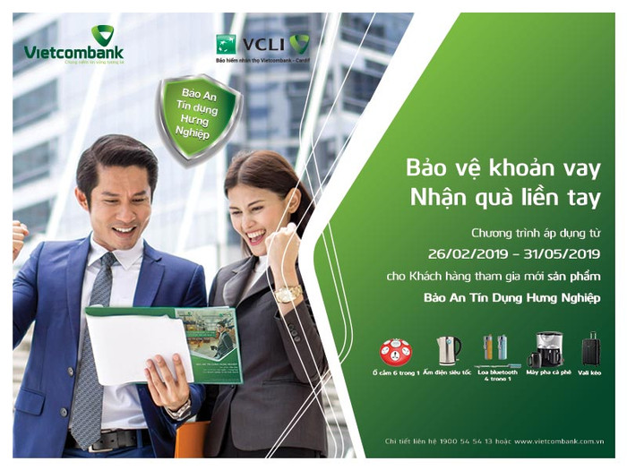 Nhân dịp ra mắt sản phẩm mới Bảo An Tín Dụng Hưng Nghiệp, Vietcombank phối hợp với Công ty Trách nhiệm Hữu hạn Bảo hiểm Nhân thọ Vietcombank-Cardif triển khai chương trình tri ân khách hàng “Bảo vệ khoản vay - Nhận quà liền tay”.