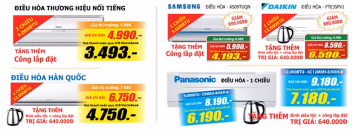 Sự phối hợp giữa các ngân hàng và siêu thị điện máy ngày càng mang lại lợi ích tối ưu cho người tiêu dùng. Chương trình đang được khách hàng quan tâm trong thời gian gần đây là thanh toán qua thẻ JCB Vietinbank được giảm giá lên tới 30%. Ví dụ như chiếc điều hòa 1 chiều 12000BTU Samsung AS12TULN bán tại Media Mart giá 6.750.000 đồng, thì khi thanh toán qua thẻ JCB, khách hàng chỉ còn phải trả 4.750.000 đồng.