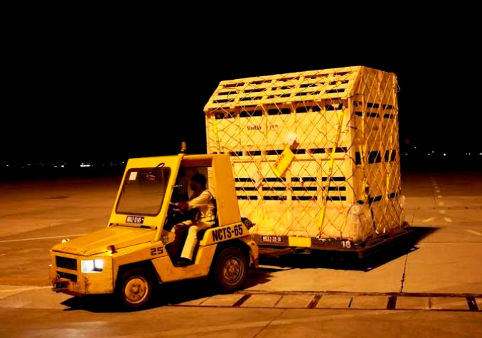 | Sau khi hạ cánh, phải chờ khoảng thời gian nửa tiếng để bò thích nghi thời tiết không mệt, sau đó được xe chuyên dụng đưa ra sân trước ga hàng hóa. |