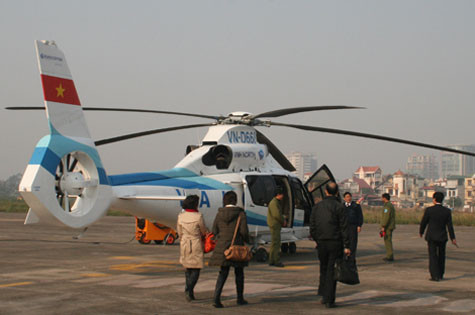 | chiếc trực thăng trị giá gần 5 triệu USD của Chủ tịch Tập đoàn Hòa Phát Trần Đình Long cũng đã có mặt tại sân bay Đà Nẵng. |