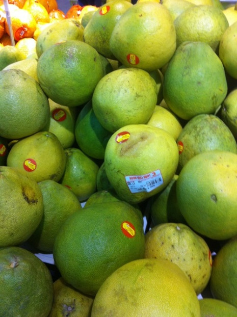 | Hình ảnh phản cảm tại quầy bán bưởi da xanh. |