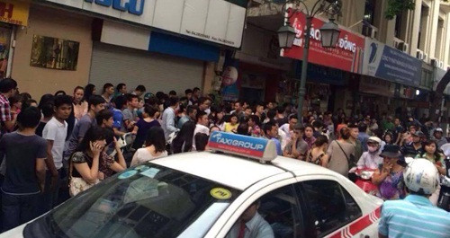 Hình ảnh tắc đường do chen chúc mua đồ Gucci thanh lý ở Hà Nội: