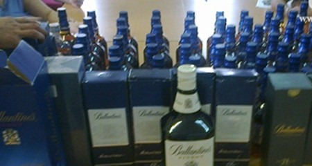 Đại diện Công an quận Cầu Giấy cho biết, nhìn bằng mắt thường khó phân biệt được đâu là rượu thật và giả trong những chai rượu nhập lậu này.