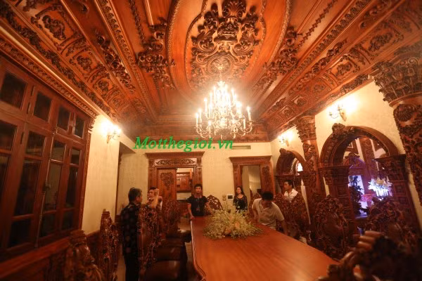 Với nội thất chủ đạo bằng loại gỗ gõ đỏ quý hiếm được thiết kế từ trên xuống dưới đã tạo lên sự sang trọng và đẳng cấp trong mắt gia chủ. Và những hình ảnh về nội thất bên trong "tòa lâu đài" này cũng là lần đầu tiên được hé lộ...