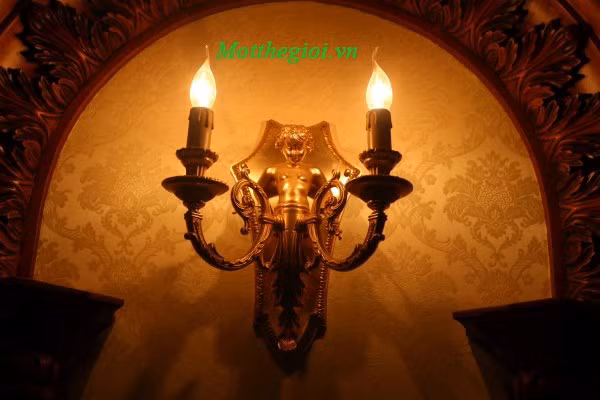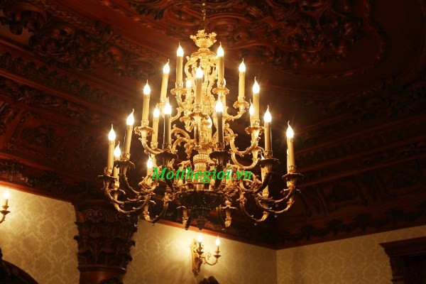 Hệ thống đèn chiếu sáng trong phòng làm nổi bật lên những hoa văn, chi tiết cầu kì trong lâu đài.