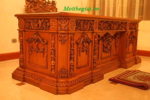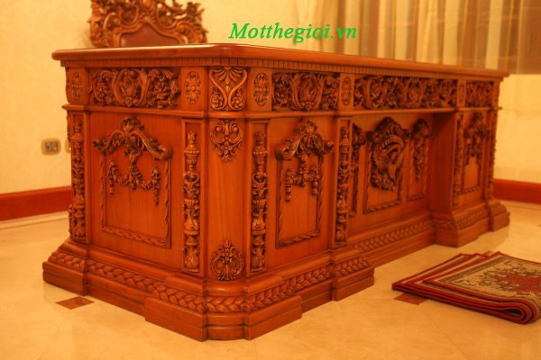 | Chiếc bàn làm bằng gỗ đỏ gõ đỏ tự nhiên trong phòng làm việc của gia chủ. |