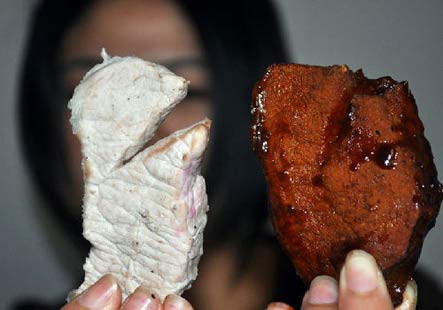 | 2. Thịt bò giả: Hồi năm ngoái, tỉnh An Huy (Trung Quốc) phát hiện chất phụ gia “hương liệu thịt bò”. Đây là loại phụ gia có thể biến thịt lợn thành thịt bò. Giá bán mỗi gói vào khoảng 45 nhân dân tệ (tức hơn 130.000 đồng). |