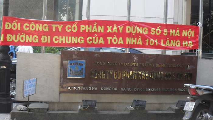 Sau một thời gian tạm lắng, câu chuyện diện tích chung, diện tích riêng tại Hà Nội lại bùng phát. Tại chung cư số 101 Láng Hạ, mới đây người dân liên tục phản ánh tới các cơ quan chức năng về việc Cty CP Xây dựng số 5 Hà Nội tự ý rào chắn đường giao thông xung quanh tòa nhà, quây cải tạo trước cửa sảnh chính khiến người dân không có đường vào nhà, phải chuyển sang đi cửa ngách.