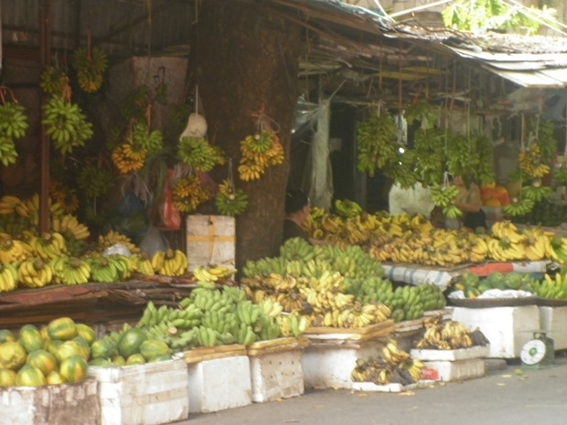 | Khu phố bên cạnh chuyên bán các loại hoa quả dùng để thờ, cúng... Nhiều nhất vẫn là chuối. |