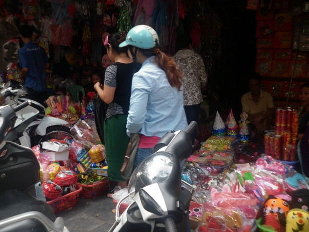 | Các chủ cửa hàng vẫn đang tiếp tục quá trình chuẩn bị đồ bán cho ngày rằm tháng 7 |