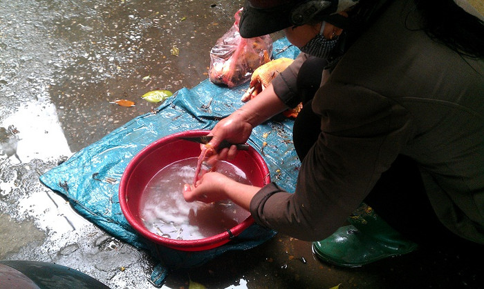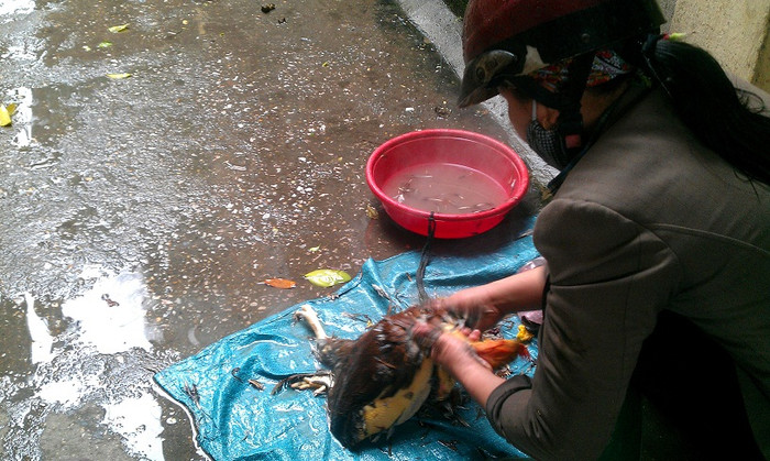 | Tiếp tục công đoạn mổ gà. |
