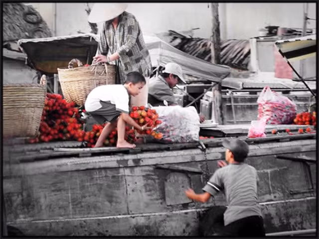 | Cảnh mua bán ở chợ nổi diễn ra chóng vánh với giá cả hào phóng, hiếm có chuyện trả giá cò kè. Thông thường, khoảng 8, 9 giờ sáng, khi nắng vừa lên thì vãn. Người bán quay về với công việc ruộng vườn; người mua thì bắt đầu một cuộc hành trình mới đến các địa phương khác để tiêu thụ sản phẩm của mình. Và cứ thế, hôm sau họ lại gặp nhau |