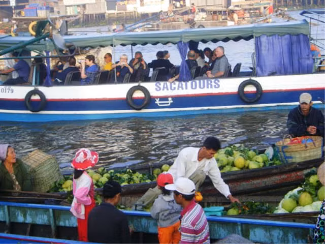 | Đi chợ nổi Cái Răng thích nhất là bắt gặp cảnh thương hồ giao hàng: người bán đứng trên ghe lớn giao từng túi, giỏ hàng... cho thuyền nhỏ. Kẻ chuyền, người nhận nhịp nhàng, điệu nghệ trông thật tuyệt. Bạn sẽ thích thú khi được hòa mình vào thế giới thu nhỏ giữa mênh mông trời, nước; ấm lòng với những nụ cười hiền hậu, thân thương |
