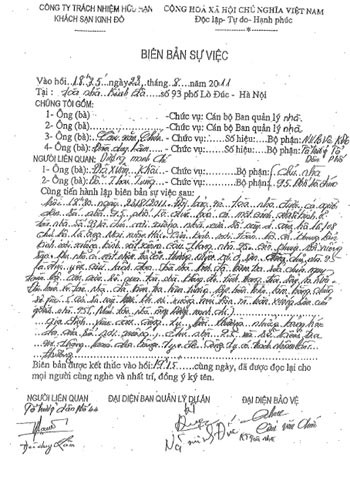 Biên bản ghi nhận sự việc cửa kính rơi vãi vắt ngang cầu thang
