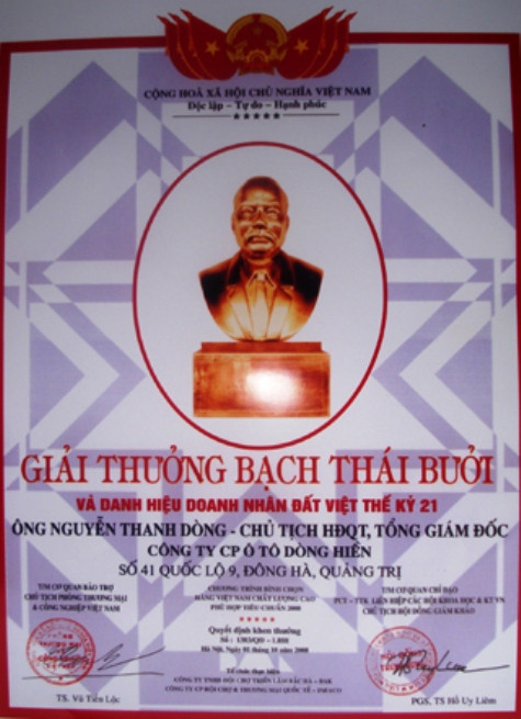 | Với những đóng góp của mình trong giới kinh doanh, đặc biệt ông là biểu tượng cho doanh nhân Việt với khao khát làm giàu, ông tự làm nên tất cả từ hai bàn tay trắng. Hình tượng tên tuổi ông đã trở thành giải thưởng danh giá trao tặng cho các doanh nhân |