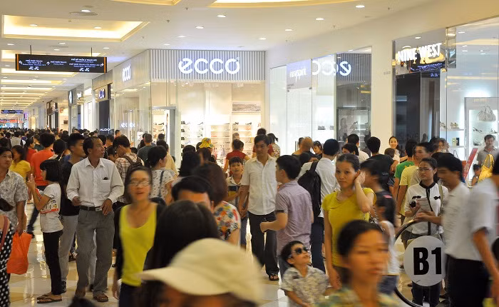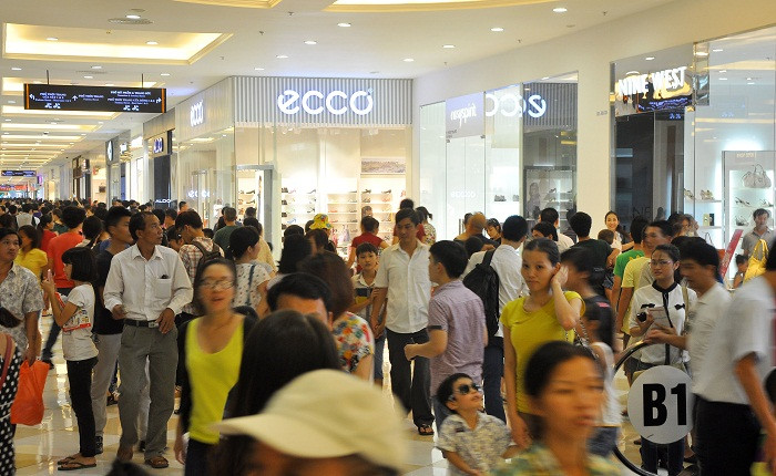 Hơn 9 giờ sáng, không gian trong TTTM Vincom Mega Mall Royal City đã chật kín người.