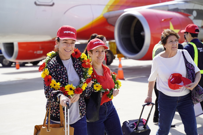 Tàu bay Vietjet sơn hai màu đỏ vàng của lá cờ Việt Nam, biểu tượng du lịch và ca khúc Hello Việt Nam đã mang hình ảnh đất nước, thiên nhiên, con người Việt Nam tới với bạn bè năm châu trên khắp hơn 80 điểm đến quốc tế mà hãng đang khai thác, từ Trung Quốc, Ấn Độ, Nhật Bản, Hàn Quốc, Thái Lan, Singapore, Malaysia, Indonesia, Malaysia…