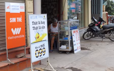 | Một cửa hàng trên đường Trường Chinh bán điện thoại Beeline kèm sim tỷ phú. |