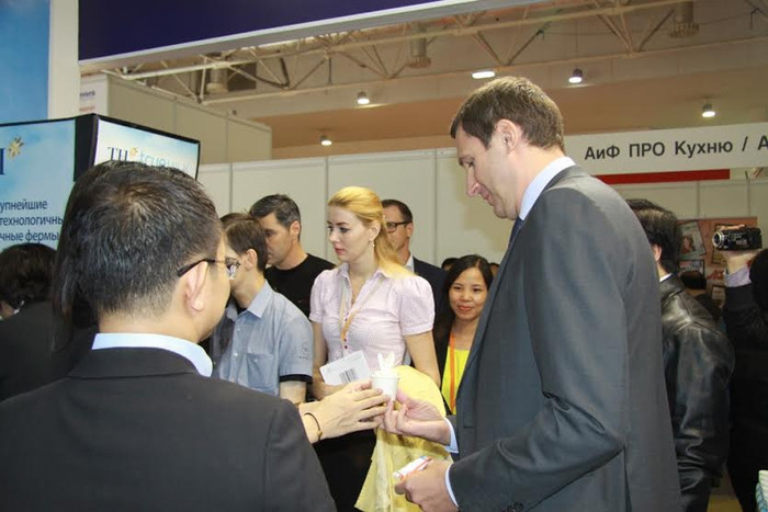 Trong đó đáng chú ý là gian hàng của TH true MILK. Được biết dù là lần đầu tiên Công ty Cổ phần Chuỗi thực phẩm TH thuộc Tập đoàn TH (sở hữu thương hiệu TH true MILK) tham dự Triển lãm Thực phẩm Quốc tế Moscow 2015 nhưng đã tạo được tiếng vang mạnh mẽ từ sản phẩm chất lượng cao cùng Dự án chăn nuôi bò sữa tập trung và chế biến các sản phẩm sữa tươi sạch với tổng vốn đầu tư hơn 1 tỷ USD được thông tin cặn kẽ trong gian hàng triển lãm.