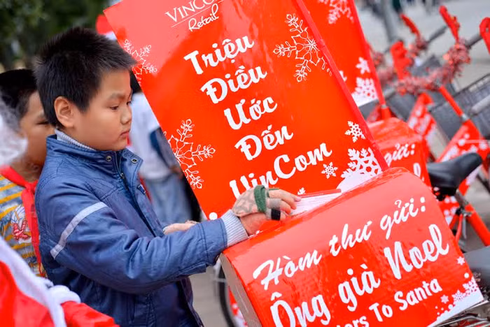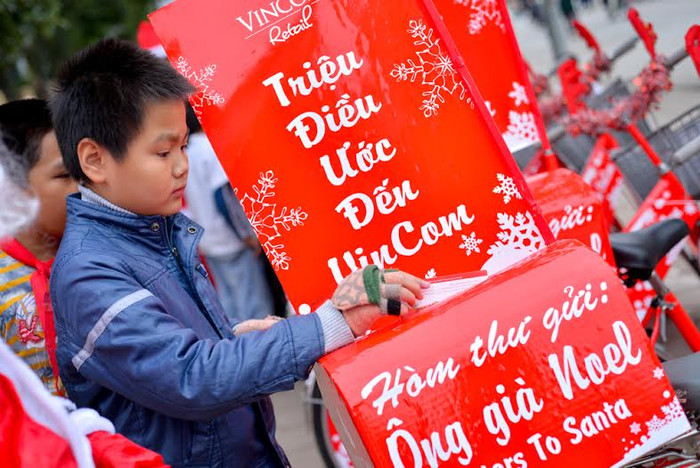 Với thông điệp “Trao yêu thương nhiều hơn… Giáng sinh này!”, bên cạnh các hoạt động vui chơi giải trí và khuyến mại mua sắm, hệ thống TTTM Vincom cũng tổ chức một hoạt động vô cùng ý nghĩa mang tên “Triệu điều ước. Đến Vincom”. Tại đây, một thế giới cổ tích được mở ra với các em nhỏ khi được viết điều ước của mình lên những phong thư để gửi tới Ông già Noel qua Hòm thư Santa đặt nhiều nơi tại Hệ thống TTTM Vincom. “Tổng đài Bắc cực” sẽ chuyển những điều ước đó tới gia đình em và những “Ông già Noel” tốt bụng của TTTM Vincom sẽ mang những món quà đến tận tay từng bé, biến những ước mơ trẻ thơ trở thành hiện thực.